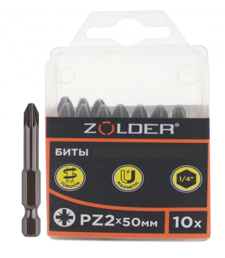 Биты для отверток PZ2 50мм (10 шт) сталь 25010 333354 Zolder