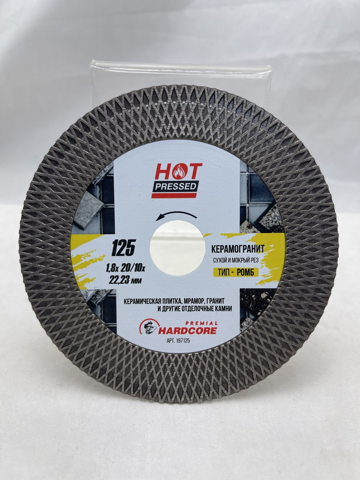 Диск алмазный по керамограниту Ультратонкий сух. и мок. рез+шлиф 125х1,8х20/10х22мм 197125 Hardcor