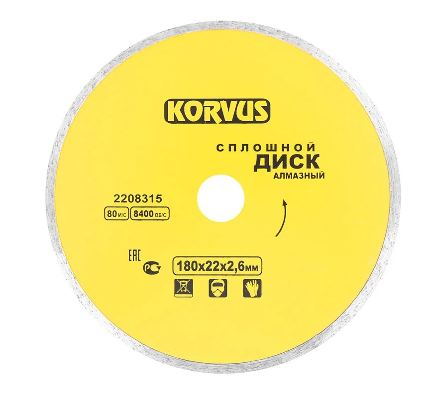 Диск алмазный сплошной 180*2,6*22мм/50 2208315 KORVUS РАСПРОДАЖА