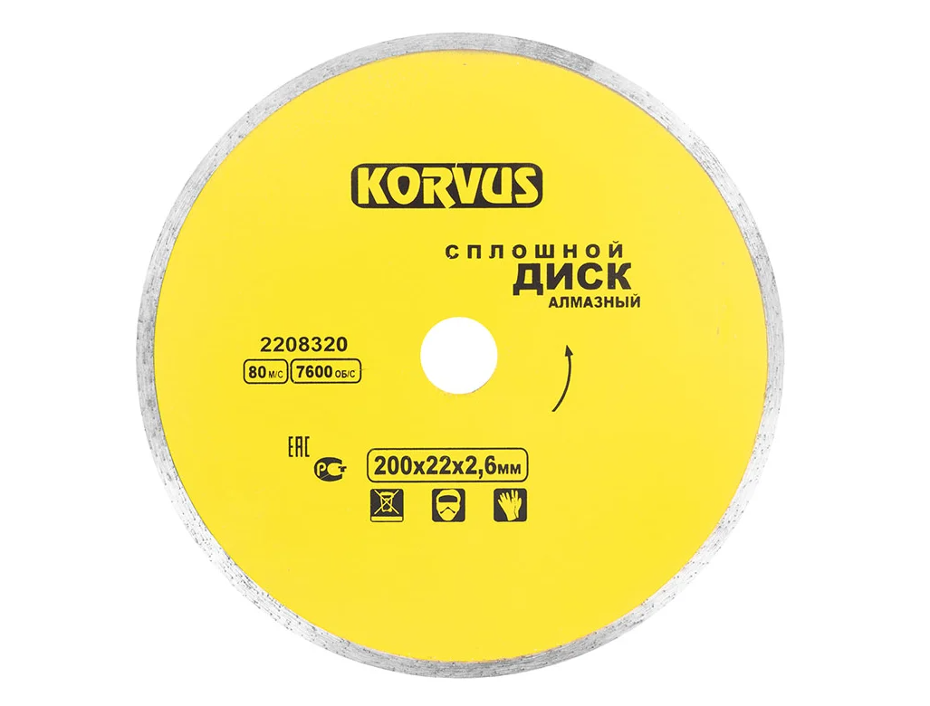 Диск алмазный сплошной 200*2,6*22мм/50 2208320 KORVUS РАСПРОДАЖА