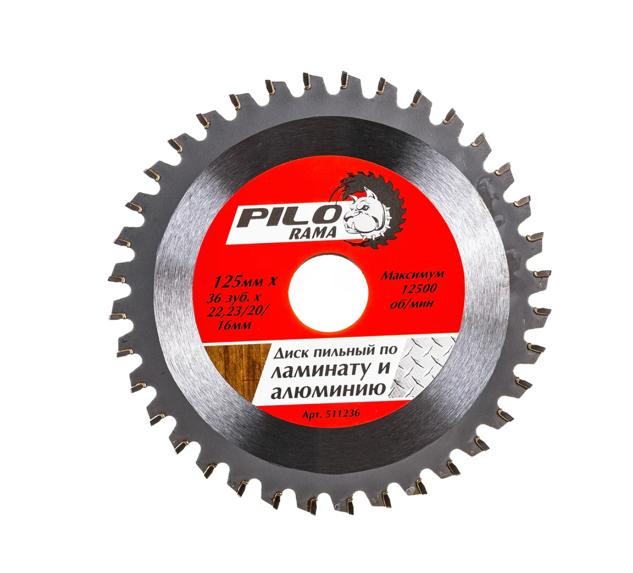 Диск пильный по дереву 125х20мм 36 зуб. + кольцо (ламинат,алюминий) /10/100 511236 Pilorama