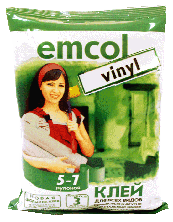 -Клей обойный emcol винил 200 грамм — для наклеивания всех типов виниловых обоев и других специальных обоев;