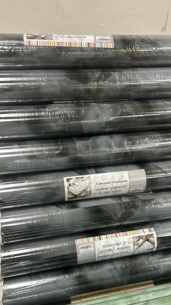 Гибкое стекло с рисунком толщ.0,6мм*1,0м*20м непрозрачная M052-2мрмор сер-черн