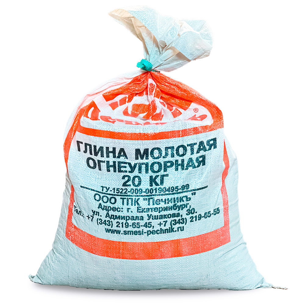 Глина шамотная огнеупорная ПГБ 20кг/40 (срок хранения не ограничен)