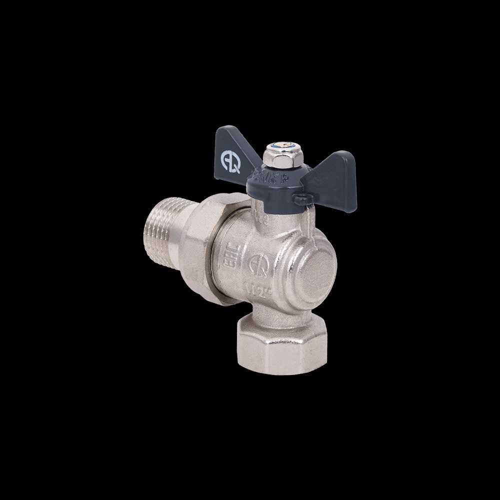 Кран шаровой со сгоном угловой FM 1/2 LU B гайка-штуцер бабочка (AQUALINK 100/10)