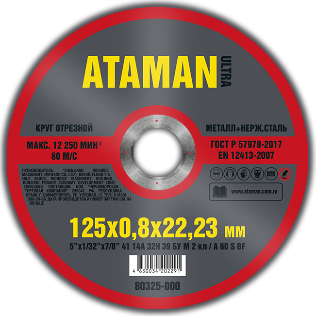 Круг отрезной по металлу 125*0,8*22 мм 41 14А ATAMAN