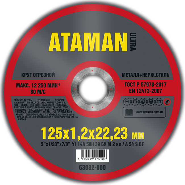 Круг отрезной по металлу 125*1,2*22 мм 41 14А ATAMAN
