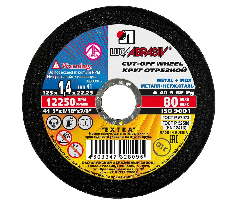 Круг отрезной по металлу 125*1,4*22 мм А40 S BF 80 /25 Луга