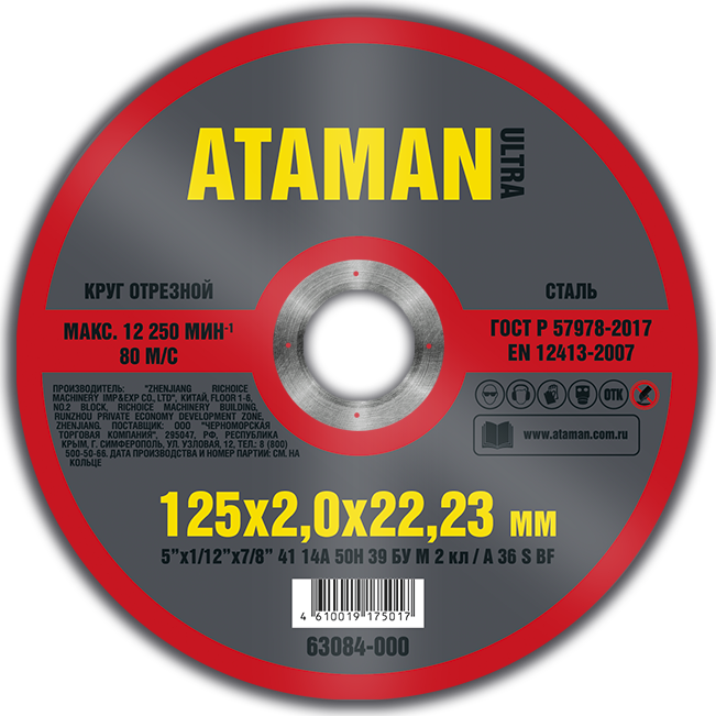 Круг отрезной по металлу 125*2*22 мм 41 14А ATAMAN