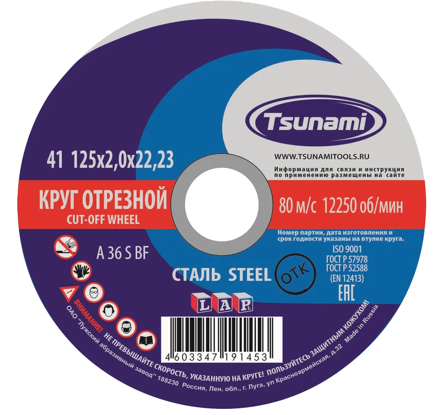 Круг отрезной по металлу 125*2*22 мм A36 S BF L TSUNAMI