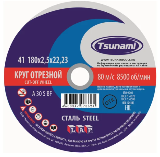 Круг отрезной по металлу 180*2,5*22 мм A30 S BF L TSUNAMI