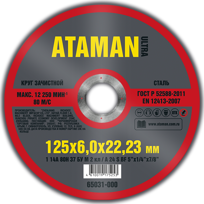Круг зачистной по металлу 125*6*22 мм 1 14А ATAMAN