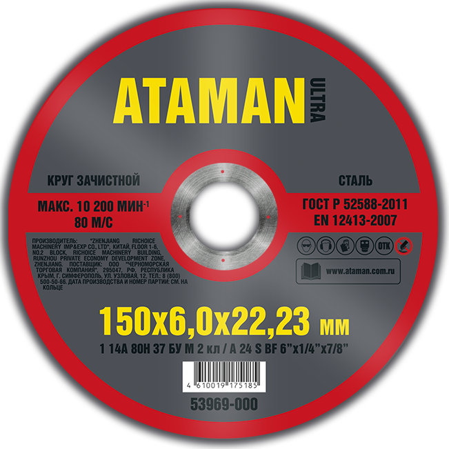 Круг зачистной по металлу 150*6*22 мм 1 14А ATAMAN