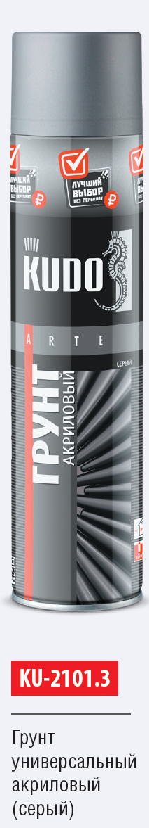 KUDO Грунт унив. АКРИЛОВЫЙ 2101.3(серый), аэрозоль 800ml. /12 KU-2101.3