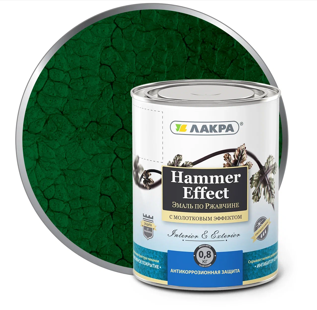 • ЛАКРА Эмаль молотк. зелен. 0,8кг 6