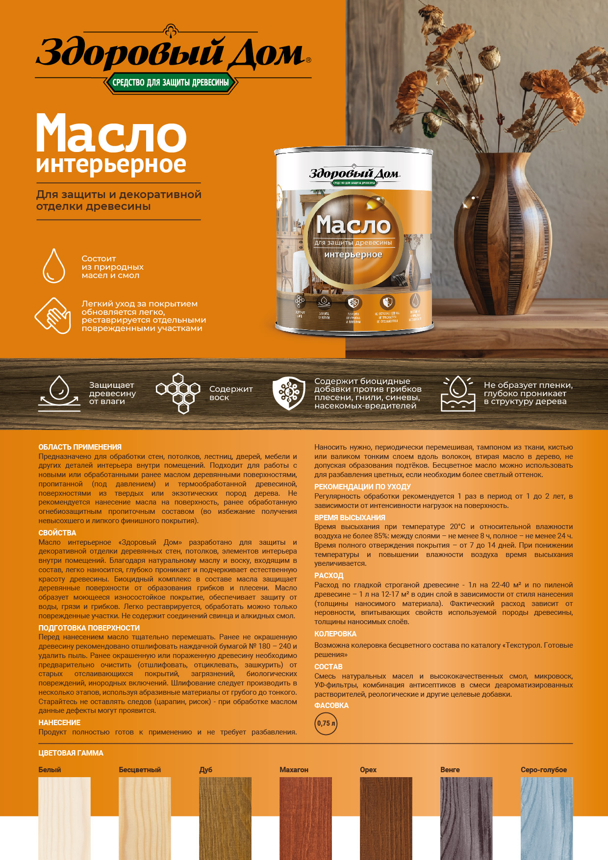 ЛАКРА Масло Интерьерное Здоровый Дом бесцветное 0,75л /6