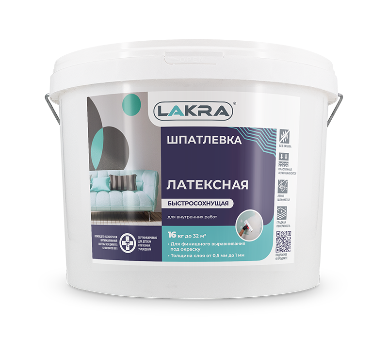 ЛАКРА шпаклевка латексная для внутр,работ 16 кг пласт.ведро/44