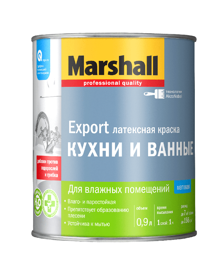 Матовая водно-дисперсионная (латексная) краска для внутренних работ в помещениях с повышенной влажностью, а также в помещениях с высокой эксплуатационной нагрузкой. Образует покрытие с высокими декоративными свойствами, устойчивое к воздействию пара от бытовых приборов (чайника, пароварки) и образованию конденсата. Входящие в состав краски специальные добавки предотвращают возникновение плесени и водорослей. Окрашенная поверхность выдерживает мытье с применением мягких моющих средств. Краска легко наносится и быстро высыхает.