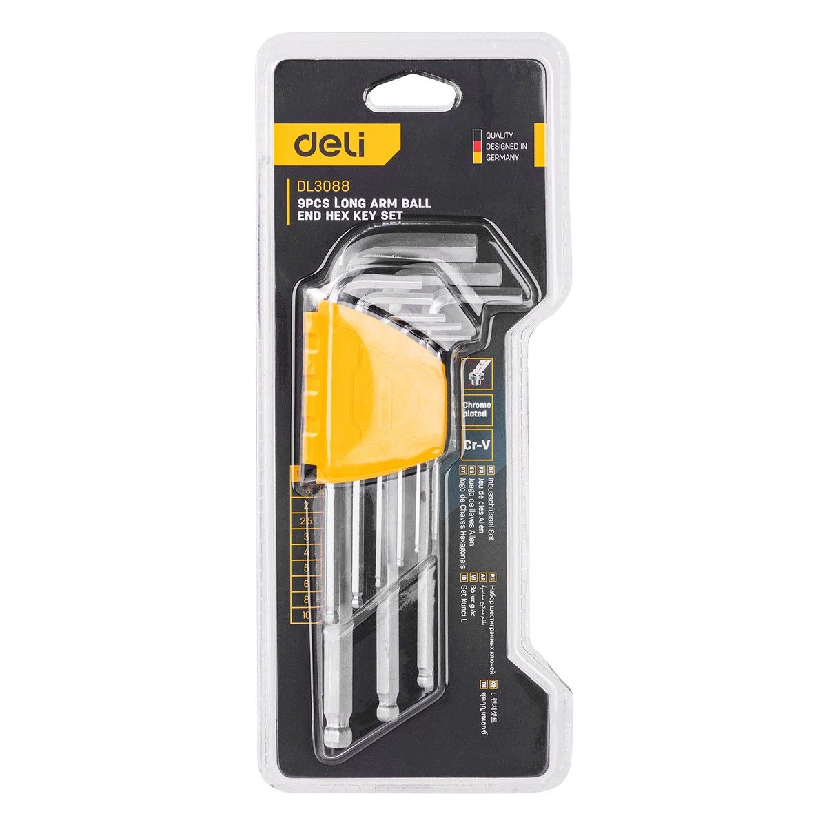 Набор шестигранных ключей с шаром удлиненных 9шт (1,5-10мм) 1/6 98334 Deli DL3088
