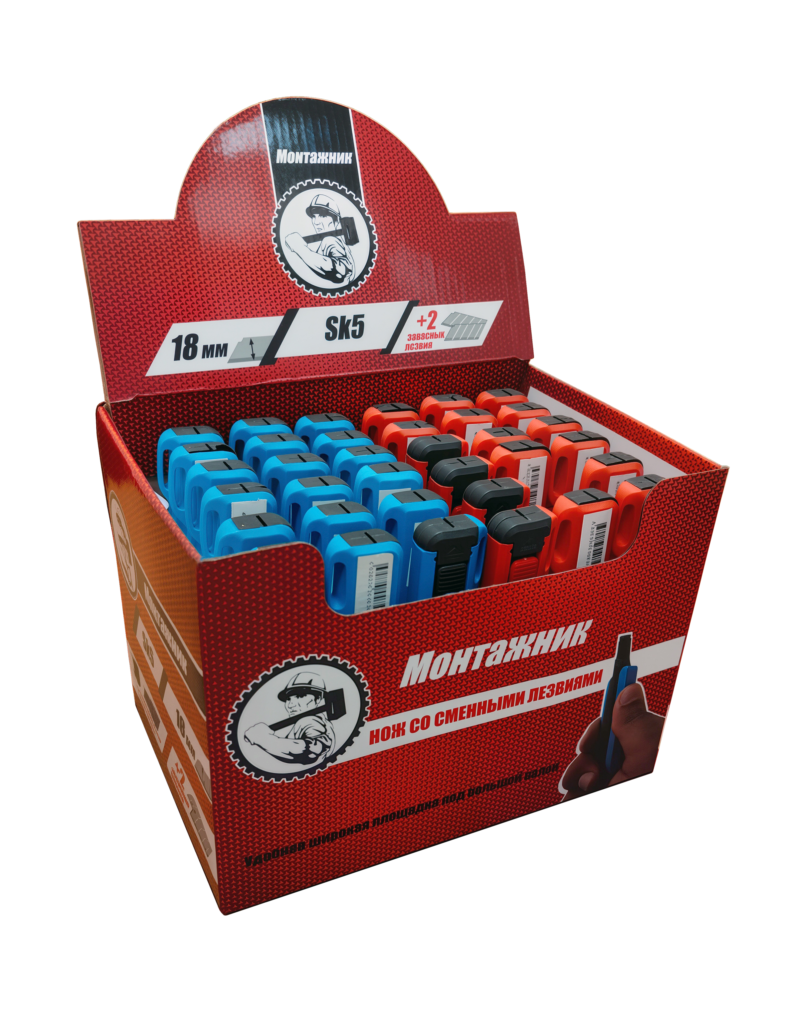 Нож со смен.лезв.1+2 лезв. 18мм (36шт в боксе) /36/144 600511 Монтажник