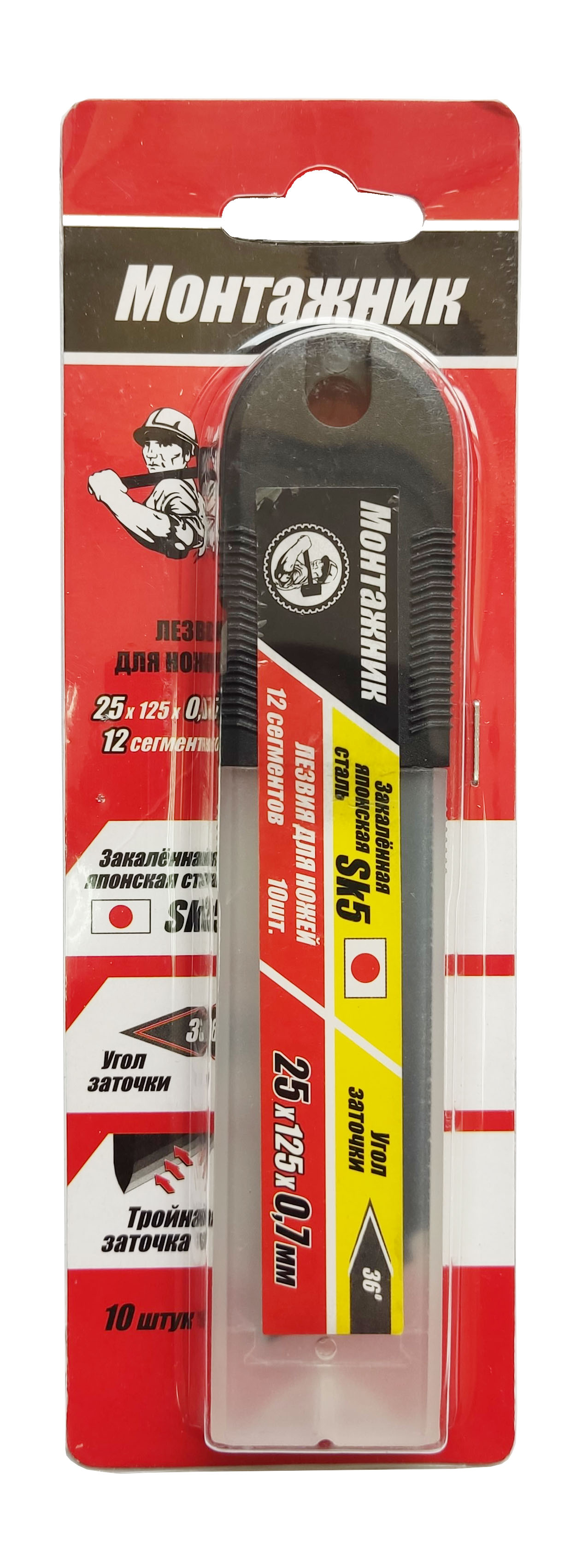 Отламывающиеся лезвия для ножей SK5 25 мм 12 сегм. (10шт) /20/300 605725 Монтажник