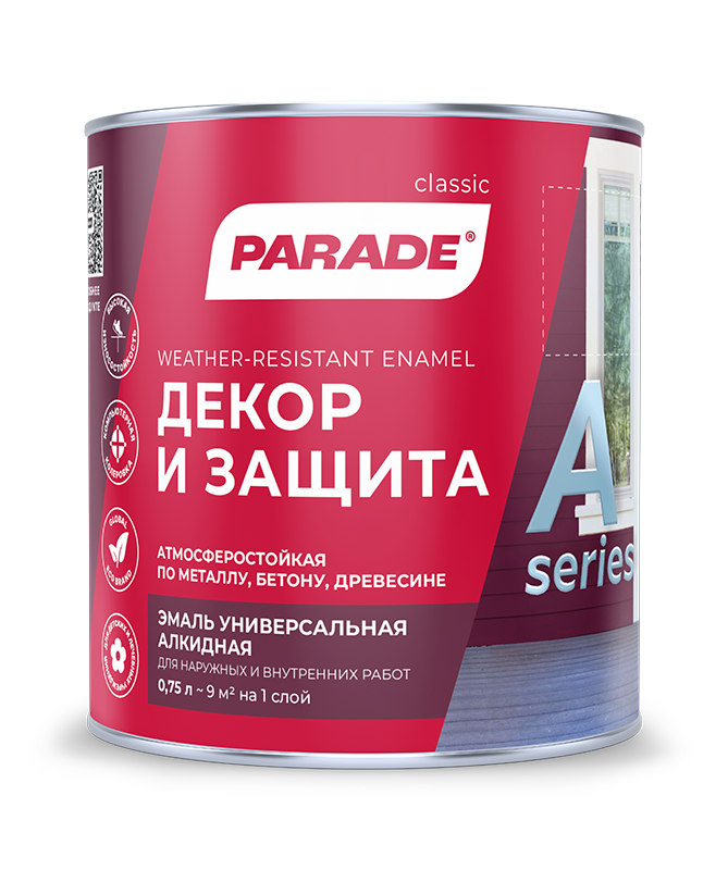 ПАРАД A1 эмаль алкидная база A белая матовая 0,75 л./6