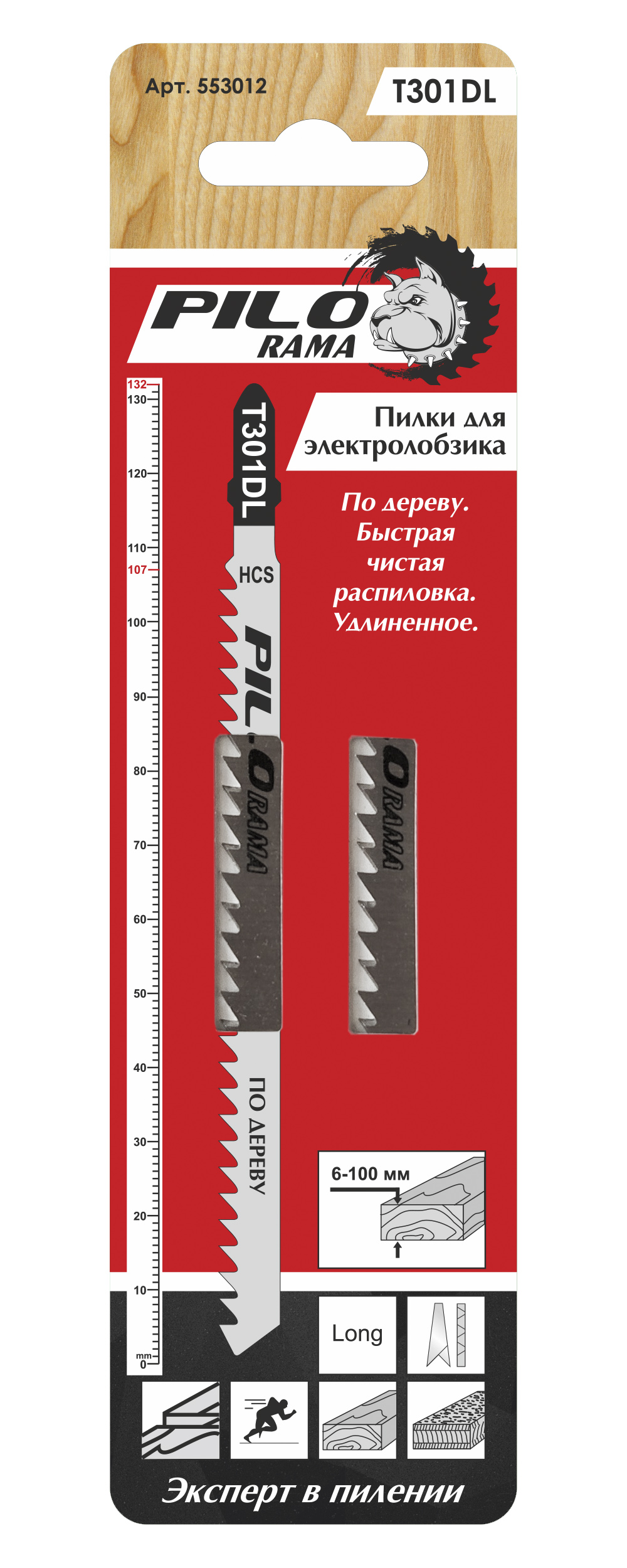 Пилки для лобзика по дереву 132х107 мм 6з/д 2шт быст.чистый расп. Т301DL 10/100 553012