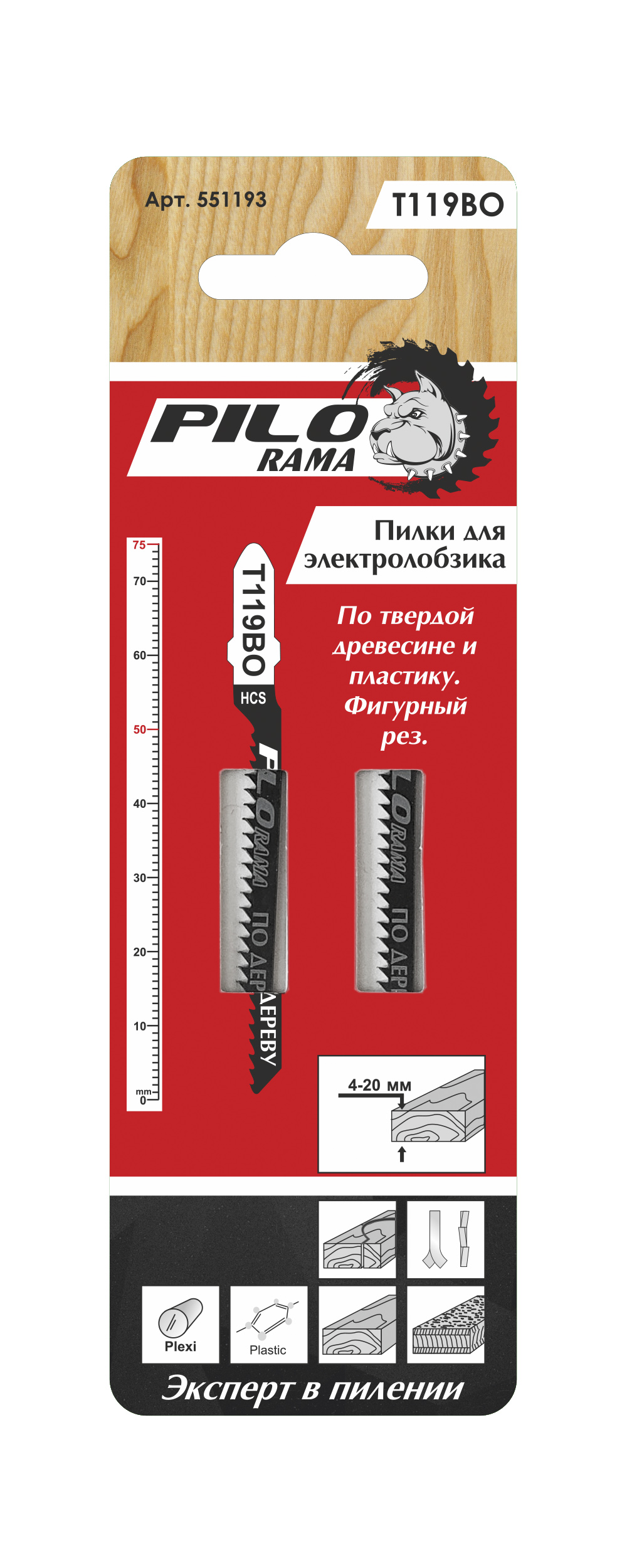 Пилки для лобзика по дереву и оргстеклу 75х50 мм 12з/д 2шт T119BО 10/100 551193