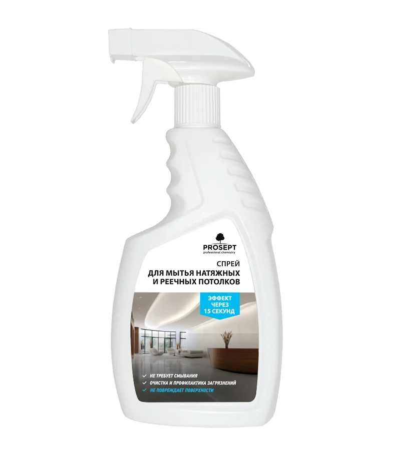 Universal Delicate - средство для очищения и предотвращения активного загрязнения натяжных и реечных потолков. Состав эффективно борется со следами жирового и мыльного налета, табака и насекомых, а также очищает от пыли, грязи и других бытовых загрязнений. Подходит для мытья натяжных ПВХ потолков с глянцевым, матовым и сатиновым полотном, покрытий с фотопечатью, а также реечных и подвесных потолков из алюминия, стали, дерева, ПВХ и других влагостойких поверхностей. Не требует смывания.