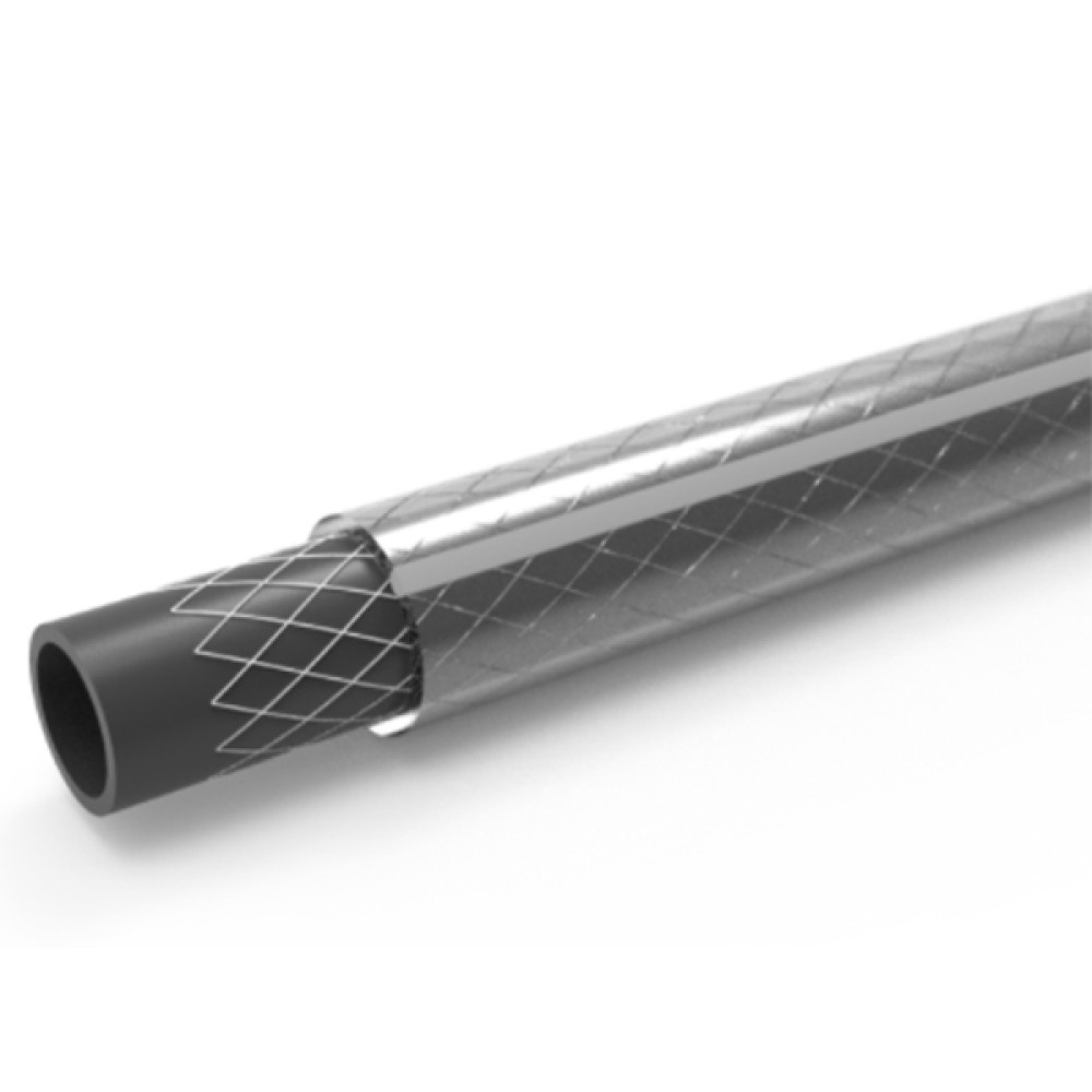 "Шланг ПВХ черный армированный Рабочая температура от -20 до +50°C Сырье - первичный ПВХ Внутренний слой - черный, внешний – прозрачный Рабочее давление до 10 Бар Армирован сверхпрочной, ярко-белой, свето-стабилизированной полиамидной нитью"
