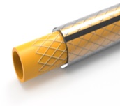 "Шланг ПВХ цветной color Orange-black 01 Рабочая температура от -20 до +50°C Сырье - абсолютно прозрачный, первичный ПВХ, Давление 6 атм (9 на разрыв) Армирован сверхпрочной, ярко-белой, свето-стабилизированной полиамидной нитью"