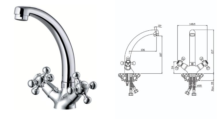 Смеситель д/кухни 01430GR GIRONA /10 - в РАСПРОДАЖА