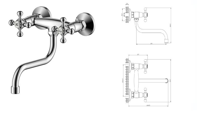 Смеситель д/кухни настенный 01410GR GIRONA /10 - в РАСПРОДАЖА