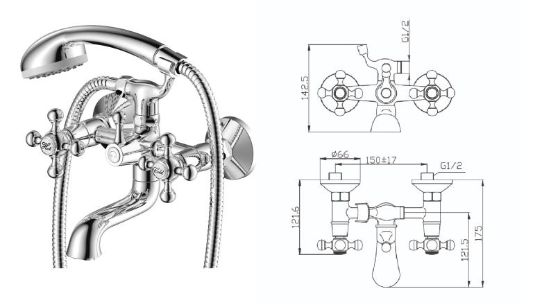 Смеситель д/ванны 01201GR GIRONA /8 - в РАСПРОДАЖА