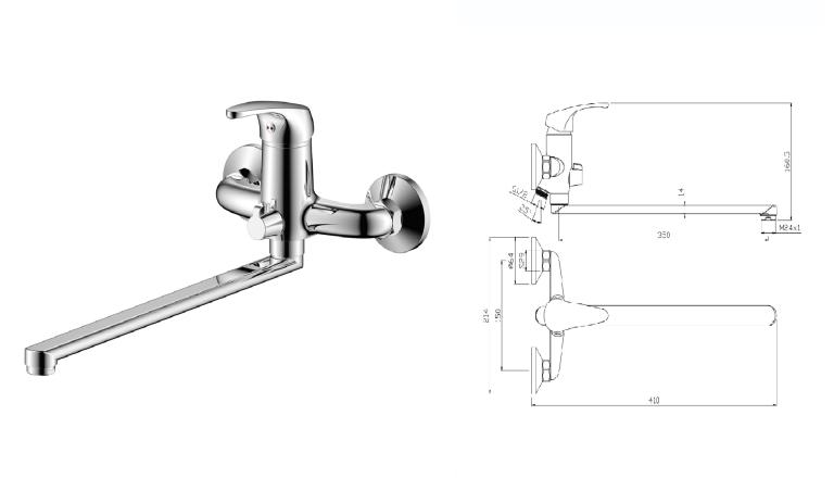 Смеситель д/ванны с длинным изливом 02221AV AVILA /8 - в РАСПРОДАЖА