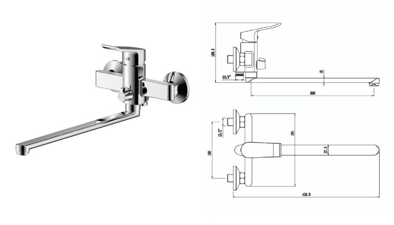 Смеситель д/ванны с длинным изливом 16221PL PLAZA Б /8 - в РАСПРОДАЖА