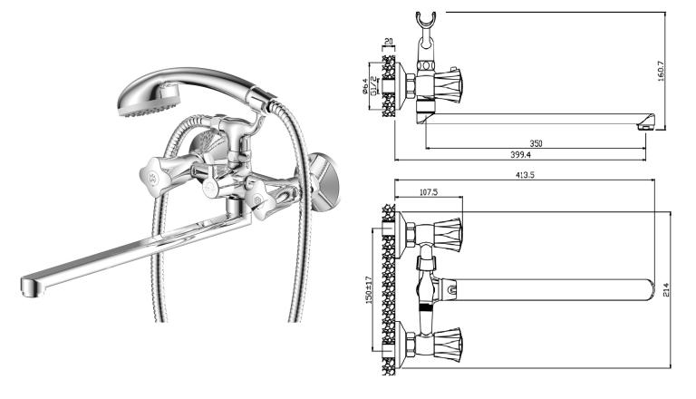 Смеситель д/ванны с длинным изливом 21221VG VIGO Б /8 - в