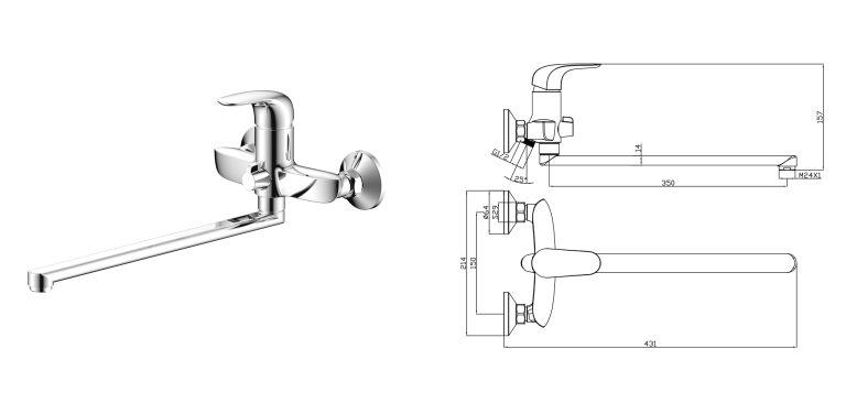 Смеситель д/ванны с длинным изливом CASTILLA 07221CS Б/ 8 РАСПРОДАЖА