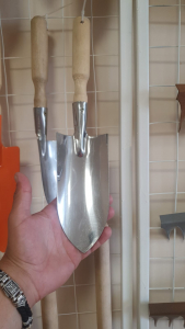 Совок посадочный большой с деревянной ручкой (нерж) 0,8 мм.(упак.25шт.)