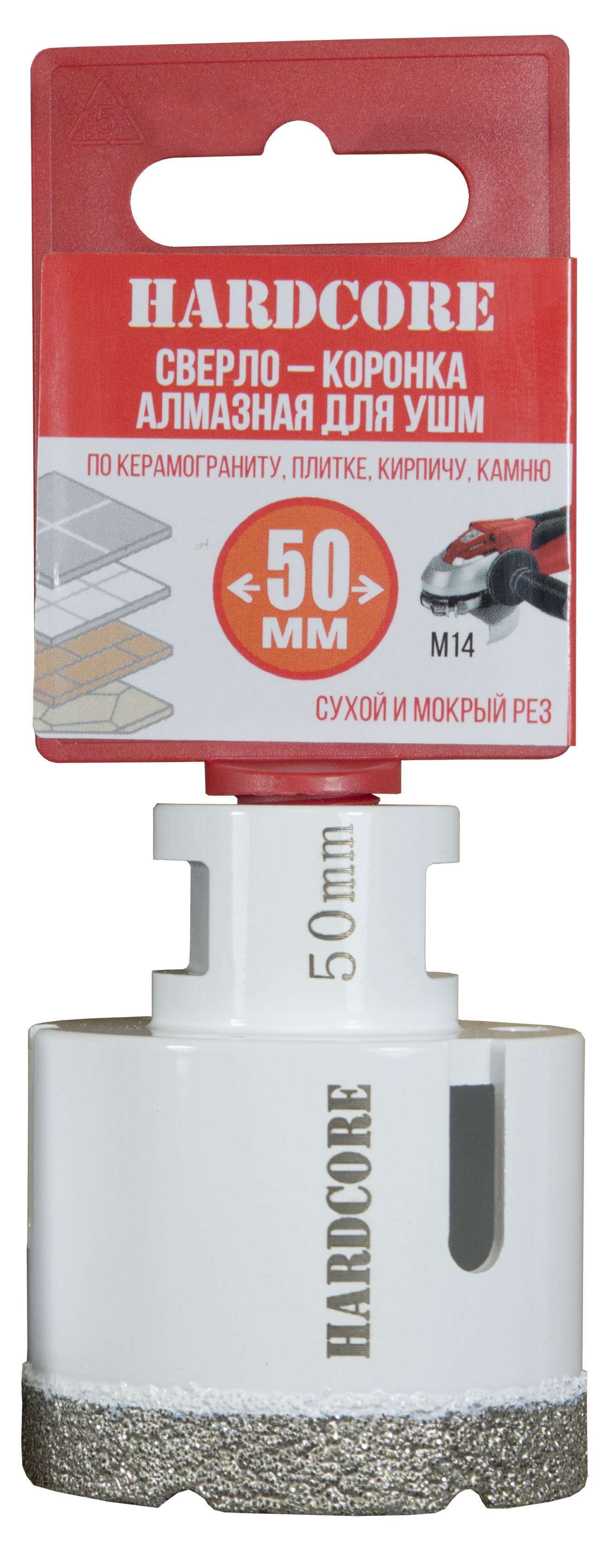 Сверло-коронка алмазная по керамограниту для УШМ 50мм 155050 Hardcore
