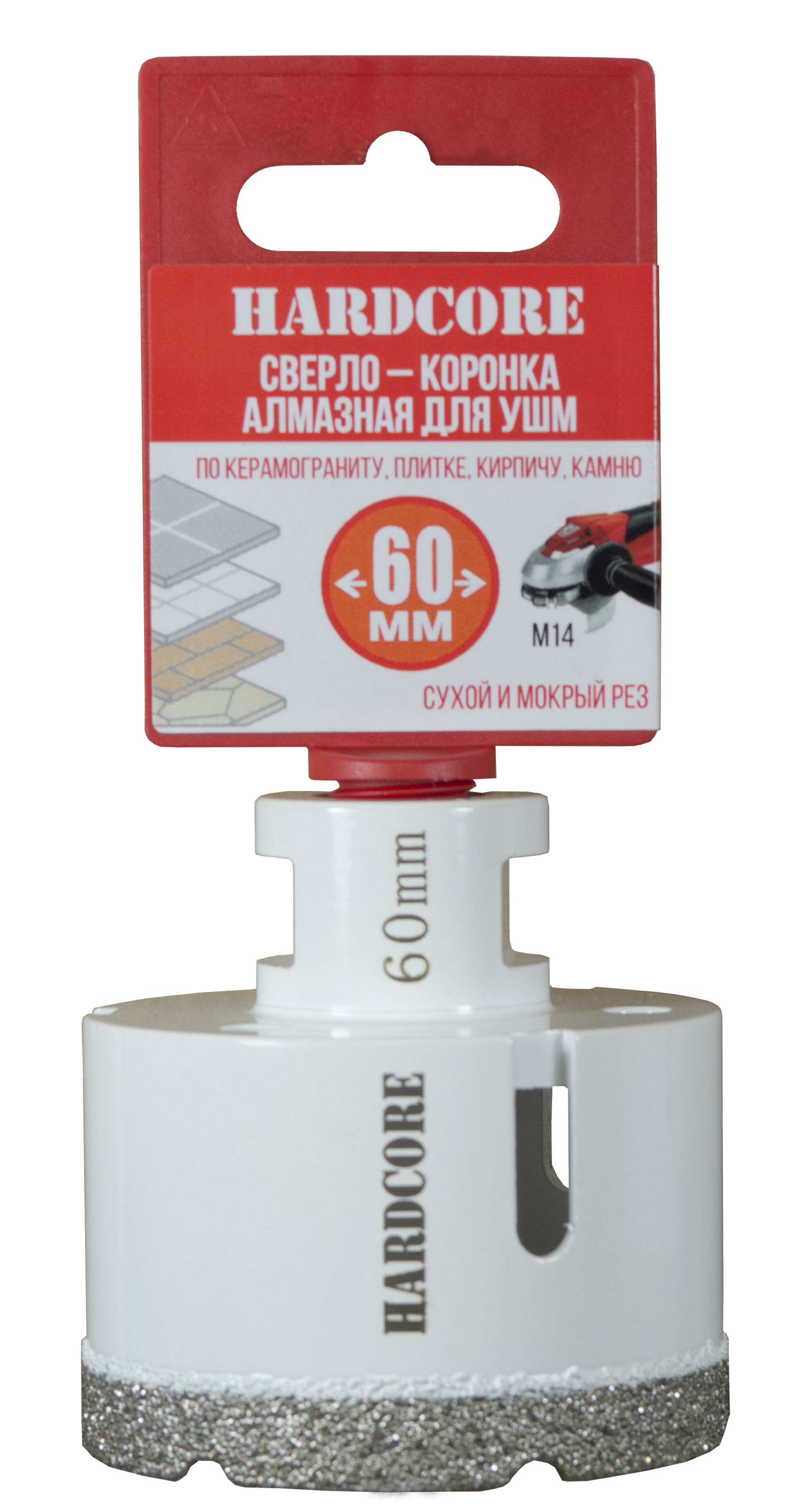 Сверло-коронка алмазная по керамограниту для УШМ 60мм 155060 Hardcore