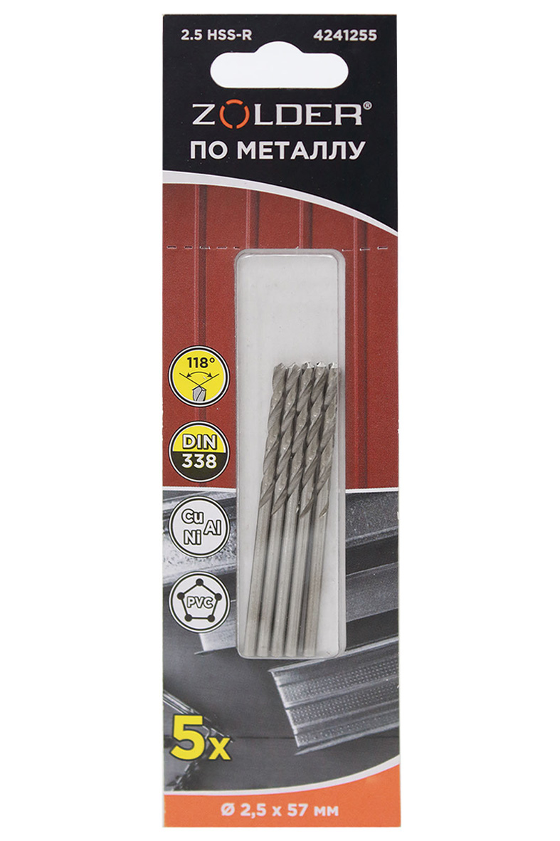 Сверло по металлу 2,5 мм HSS-R с цилиндр. хвост. DIN338 (5шт) /400 4241255 Zolder