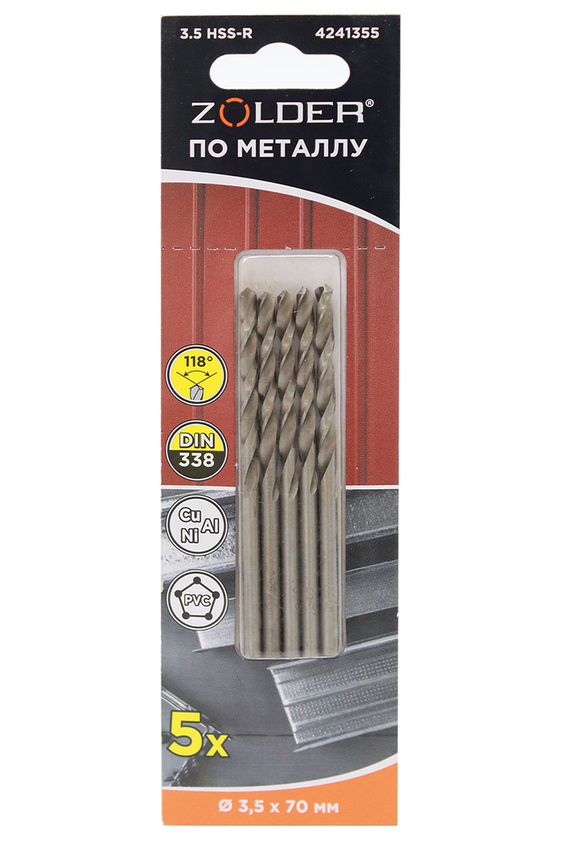 Сверло по металлу 3.5 мм HSS-R с цилиндр. хвост. DIN338 (5шт) /400 4241355 Zolder