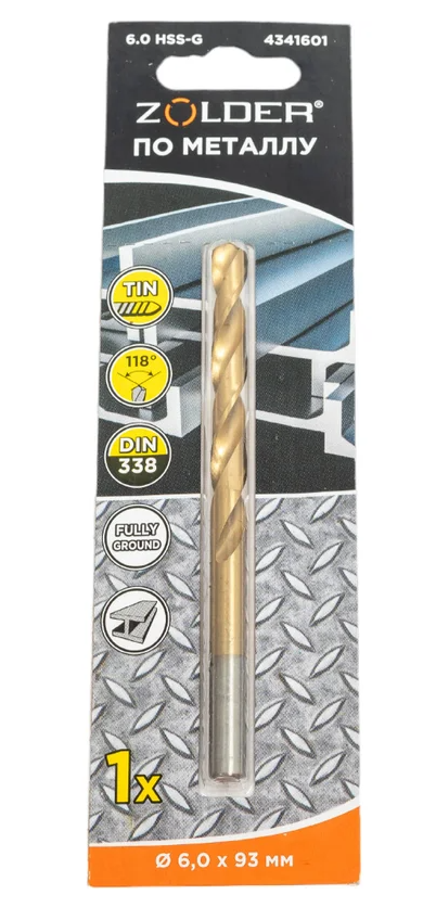 Сверло по металлу 6 мм HSS-R с цилиндр. хвост. DIN338 (2шт) /300 4241602 Zolder