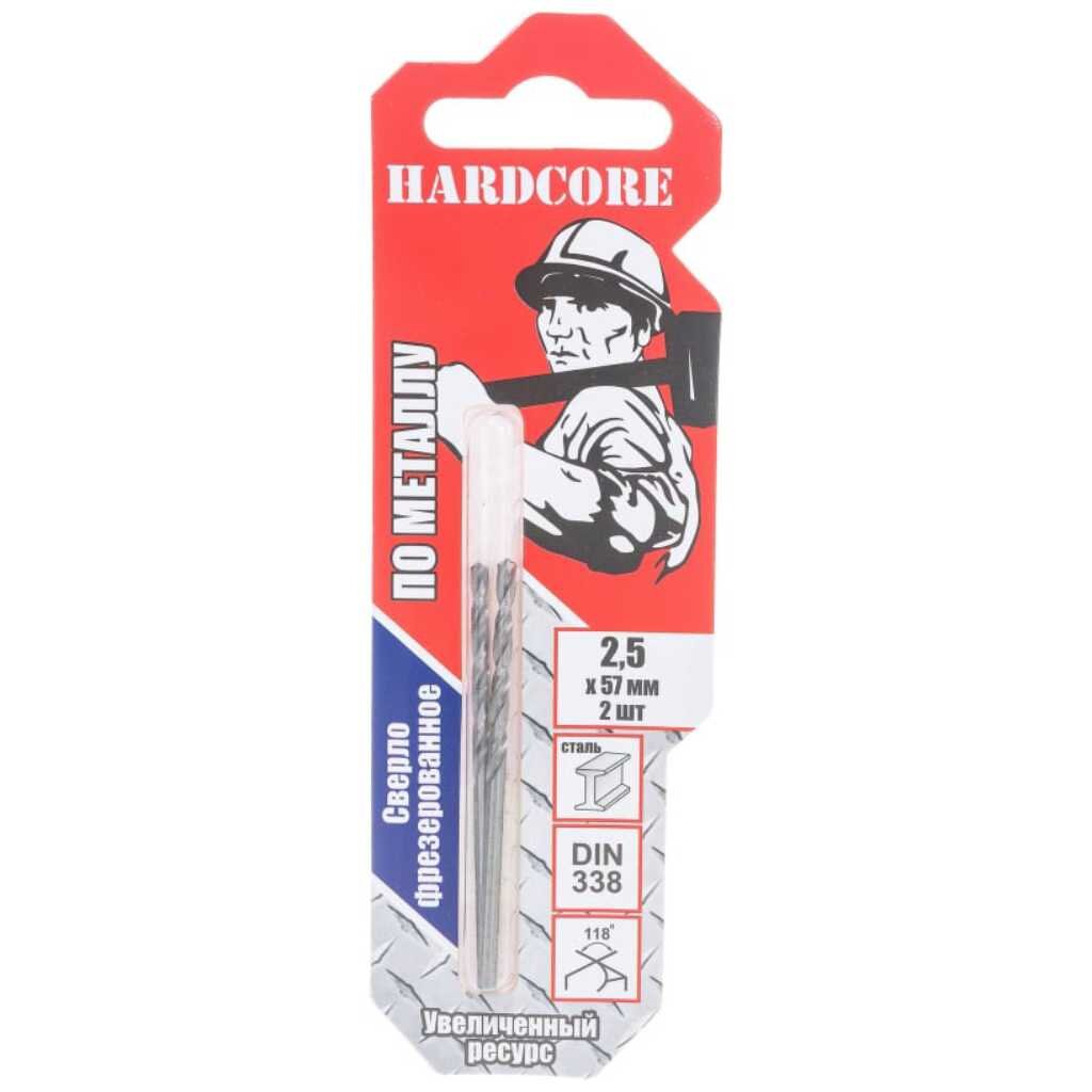 Сверло по металлу фрез. 2,5 мм х 57 мм 2 шт/уп /10 140025 Hardcore
