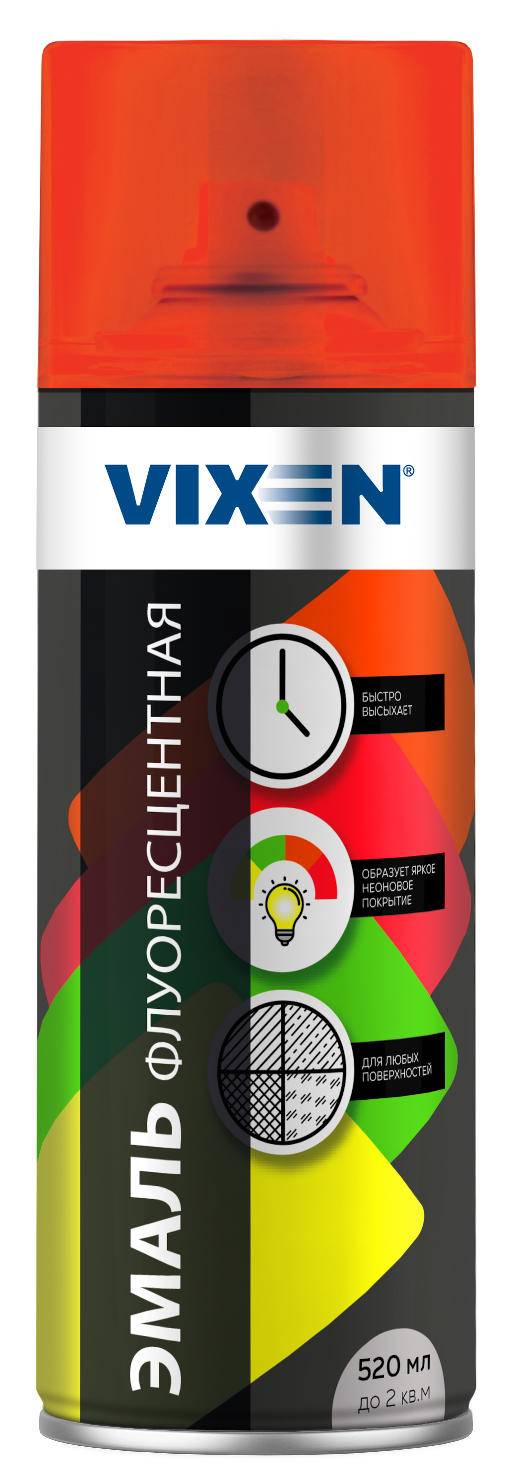 Краска-спрей VIXEN флуоресцентная красная 520мл аэрозоль- Специальная эмаль применяется для создания яркого, светоотражающего покрытия.